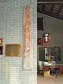 There is a slab above the main entrance, which is moulded with the four Chinese characters denoting "King Law Ka Shuk". The characters were written by well-known calligraphist Tang Yi-nga, who was the son of one of the descendants of the Tang lineage of Dongguan, Tang Yung-Kang. Tang Yung-Kang is also noted for being the Hanlin Yuan Shue Kat Sz (Imperial examination scholar) in the tenth year of the reign of the Tongzhi Emperor (1871) during the Qing dynasty.