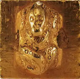 The King of Na gold seal (Japanese: 漢委奴国王印) is a solid gold seal discovered in the year 1784 on Shikanoshima Island in Fukuoka Prefecture, Japan. The seal is designated as a National Treasure of Japan.[1] The seal is believed to have been cast in China and bestowed by Emperor Guangwu of Han upon a diplomatic official (envoy) visiting from Japan in the year 57 AD. The five Chinese characters appearing on the seal identify it as the seal of the King of Na state of Wa (Japan), vassal state of the Han Dynasty.[2] The seal is currently in the collection of the Fukuoka City Museum in Fukuoka, Japan.[3]
