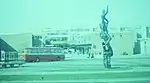 Glenrothes town centre was originally to be built on the same principles of the English new towns such as Stevenage and Bracknell. The centre would comprise a series of shopping streets and squares separated from traffic. The first phase of the Kingdom Centre was built as large modern pedestrian square. A large glazed roof and a modern fountain were incorporated as features in the design. The Golden Acorn Hotel, the town's Post Office and a bus turning circle were all included as part of the development. A Co-Op Department store opened in 1964 at the eastern entrance to the square and a town clock was built as a feature adjacent to the store.[5][6] [7]