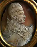 On August 1279, Charles of Anjou appointed Hugo de Sully as Captain and Vicar-General of Albania, Durrës, Vlorë, Sopot, Butrint and Corfu. In the following months a great Angevin counteroffensive was prepared.[17] A lot of materials and men including Saracen archers and siege engineers were sent to de Sully, who had captured Spinarizza from Byzantine forces making it his headquarters.[19] The first goal of the expedition was the recapture of the city of Berat, which had been under Byzantine control since 1274. However, Charles' preparations were restrained by Pope Nicholas III who had forbidden Charles from attacking the Byzantine Empire. However, Pope Nicholas III died on August 1280 and for more than six months the Pope's seat was vacant. This gave Charles an opportunity to move on. During Autumn 1280 he gave the order to Hugo de Sully to move on.[20] In December 1280 Angevin forces captured the surroundings of Berat and besieged its castle.[19]
