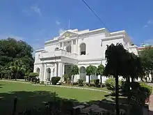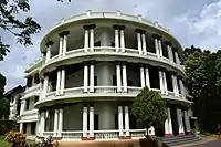 Maharaja Rama Varma (popularly known as Madrassil Theepetta Thampuran), who reigned from 1914 to 1932, was assisted by a particularly able consort named Parukutty Nethyar Amma (b. 1874).[17] The Nethyar was the daughter of Kurur Namboodiripad, who was a member of the family that had the traditional honour of anointing the kings of Palakkad. Her mother belonged to the Padinjare Shrambhi, the aristocratic Vadakke Kuruppath Nair house of Trichur.[18] She married the Maharaja, then fourth in line to the succession when she was fourteen years old in 1888. It is said that she was especially blessed by the Devi at the Chottanikkara Temple. By a quirk of fate, her husband ascended the throne as a result of the abdication of his predecessor. Since the Maharaja was a scholar and had other interests (including knowledge of how to cure snake bites and comprehend the language of lizards known as Gawli Shashtra), she took over the finances of the state. Under her guidance salaries were quadrupled and the increased revenue earned her a 17-gun salute. Parukutty Nethyar Amma was awarded the Kaiser-i-Hind Medal by King George V in 1919 for public work and came to be known as Lady Rama Varma of Cochin.[19]