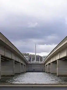 Kings Avenue is a road in Canberra which goes between New Parliament House (35.307°S 149.127°E), across Lake Burley Griffin at the Kings Avenue Bridge (35.302°S 149.141°E), to Russell near the Australian-American Monument. (35.298°S 149.151°E).
