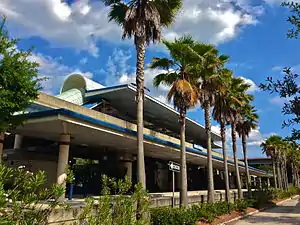 The Kings Avenue station was developed as part of the Jacksonville Skyway's Southbank segment, which carried the Skyway over the St. Johns River via the Acosta Bridge. This station and the adjacent Riverplace station opened on November 1, 2000, completing the Southbank segment as well as Phase I of the Skyway's development. It is connected to the Kings Avenue Garage, a park-and-ride garage, via a lengthy walkway passing beneath Interstate 95, and some Jacksonville Transportation Authority bus lines run through the station.[1]