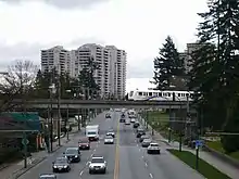 Kingsway is one of the region's main public transit corridors, with numerous bus routes operating along the road. In addition, the SkyTrain tracks mostly parallel Kingsway from Victoria Drive in Vancouver to Edmonds Street in Burnaby, crossing from the road's north side to its south side east of Boundary Road around Central Park.