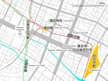 - 1956-09-23 Kintetsu Line moved to new line. Yokkaichi Station of Kintetsu near JNR Yokkaichi Station was closed. Suwa Station was moved and its name was changed to Kinki Nippon Yokkaichi.
