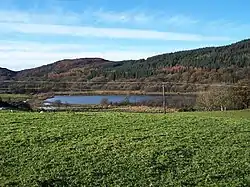 Kirk Dam is an impounding dam, located 1.5 kilometres south of Rothesay, and is separated by a causeway from the much larger Loch Fad to the south-west. It was built to provide water to the cotton mills of the town, and is now the habitat for a variety of marshland birds.[1] The earthfill dam is 6 metres high and records show it was constructed in the late 18th century.[2]