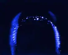 Color photographic film is calibrated to produce faithful colors when exposed to normal light. Corona discharges can interact with minute variations in the different layers of dye used in the film, resulting in a wide variety of colors depending on the local intensity of the discharge.[4] Film and digital imaging techniques also record light produced by photons emitted during corona discharge (see Mechanism of corona discharge).