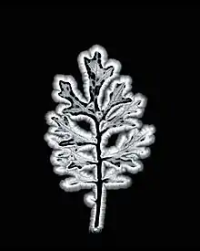 A typical demonstration used as evidence for the existence of these energy fields involved taking Kirlian photographs of a picked leaf at set intervals. The gradual withering of the leaf was thought to correspond with a decline in the strength of the aura. In some experiments, if a section of a leaf was torn away after the first photograph, a faint image of the missing section sometimes remains when a second photograph was taken. However, if the imaging surface is cleaned of contaminants and residual moisture before the second image is taken, then no image of the missing section will appear. [36] [37] [38]