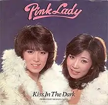 "Kiss in the Dark" (キッス・イン・ザ・ダーク, Kissu in za Dāku) is the 14th single released in Japan, and the first single released in the United States, by Japanese duo Pink Lady. The song was recorded for their debut American album Pink Lady. The duo debuted the song in May 1979 on a Leif Garrett TV special. The song's peak position in Japan on the Oricon chart was 19, and on the American Billboard charts was 37.[1] This was also the first release of the duo in to fail to make the top 10 in Japan. In addition to the all-English version of the song which was a hit in the U.S., Pink Lady also recorded a bilingual version for the album We Are Sexy, with the chorus in English and the verses in Japanese. The B-side of the single is a cover of The Left Banke's "Walk Away Renée".[2]