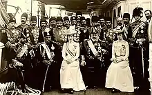 In Paris, he met Persian dignitaries in 1878 who were busy preparing the arrival of Shah Nassereddin in France for the 1878 World's Fair. They were Nazare Aga, Minister Plenipotentiary of Persia in Paris, General Neriman Khan, the Shah's aide-de-camp, and Mirza Hosein Khan Moshir od-Dowleh, the Shah's Prime Minister. These dignitaries convinced him to request a railway concession from the Shah to build a line from Rasht to Tehran. Associated with the banker Antoine Alléon, former director of the Ottoman Imperial Bank in Constantinople and recently retired in Normandy in Caen, Kitabgi obtained the railway concession from the Shah in December 1878.[3][4][5] With Alléon, he then undertook to form a syndicate of French bankers and financiers composed, among others, of Pierre-Armand Donon, chairman of the Société des dépôts et comptes courants, and Paul Eugène Bontoux, chairman of the Union générale. In July 1879, Kitabgi joined General Neriman Khan in Vienna, who had been appointed the previous year Minister Plenipotentiary of Persia in Austria. Assisted by the General, Kitabgi prepared his departure for Persia and in August 1879 he left Europe with his family and the Austrian engineer Scherzer and his two assistants.[3][6] He arrived in Tehran two months later. The engineers began surveying the railway line, but the project met with opposition from the Russians and the British and, under pressure from both powers, the Shah cancelled the concession in March 1880.[7]