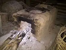 Early clay stoves that enclosed the fire completely were known from the Chinese Qin Dynasty (221 BC–206/207 BC), and a similar design known as kamado (かまど) appeared in the Kofun period (3rd–6th century) in Japan. These stoves were fired by wood or charcoal through a hole in the front. In both designs, pots were placed over or hung into holes at the top of the knee-high construction. In the Middle East, references to similar stoves and cooking ranges where the fire was lit from below are recorded as early as the 2nd-century AD, constructed of clay and either made portable or attached to the ground.[4] Raised kamados were developed in Japan during the Edo period (1603–1867).