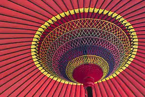 Kittisol is an obsolete Indian-English term from the 19th Century for paper umbrellas, and rain-cloaks, made of oiled paper, afterwards varnished. They were made in China or Japan,[1] and the name may have originated in the Portuguese quita-sol, meaning "excluding the sun", for parasol. In India, the term extended to the men who acted as umbrella bearers for important persons.[2]