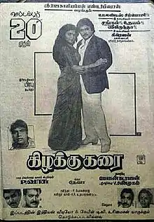 Kizhakku Karai (English: East Shore) is a 1991 Tamil drama film directed by P. Vasu. The film features Prabhu and Kushboo in lead roles. The film, produced by Mohan Natarajan and V. Shanmugam, had musical score by Deva and was released on 20 September 1991.[1][2]