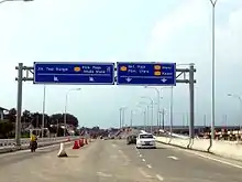 The 1.2km-long bridge connects the northern and southern parts of Klang through Jalan Goh Hock Huat and Jalan Sungai Bertih respectively.[10] The bridge is aimed to facilitate traffic between Klang north (Kapar, Meru, Federal Highway, NKVE) and Klang south (Port Klang, Bandar Bukit Tinggi, Bandar Botanic, KESAS, SKVE), hence re-routing the traffic from entering the Klang town centre.[11] It is expected that over 60,000 vehicles will use the bridge daily, reaching its full capacity of 120,000 vehicles daily by the year 2032.[12][13]