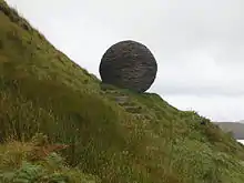 The crag is designated as a national nature reserve (NNR) due to its geological features,[1] and is owned and managed by NatureScot.[10] There is a car park and interpretation centre that explains the geology of the area and gives background to the 'Highlands Controversy', along with three waymarked trails that take visitors to points of interest across the site. The site also hosts artworks such as 'The Globe' by Joe Smith and 'Pipeworm’ by Susheila Jamieson that were commissioned to highlight the inspiration that the landscape has had on artists and poets.[3][11]