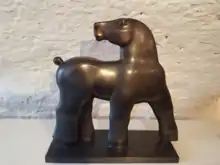 Kobe's artworks are mostly made in bronze and marble. Two subjects dominate his artworks: the female figure and the horse. Kobe’s female figures are maternal and human, be they fat or thin, and his horses symbols of strength, companionship and connection.[1]