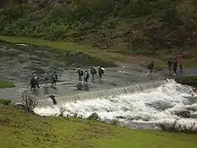 - There is a Forest Department Hut and other Forest Department buildings at 10°8′56″N 77°20′9″E at the first trout stream. Tamil Nadu Forest Dept. built the buildings to house Dept. staff who lived there while supervising wood cutting enterprises and road work crews. The laborers, mostly Sri Lankan Tamils, built temporary shacks of poles and matting. The shacks were abandoned when the cutters moved on to another area.[22] The supervisors' "pucca" huts remain and now provide basic overnight shelter for trekkers. Limited overnight accommodations may be used with advance permission.