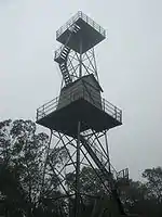 - The Fire lookout tower at 10°11′32″N 77°25′11″E just past km 13, 8 km (5.0 mi) before Berijam lake, has a roofed hexagon structure not meant for overnight use but can offer short term safety from Gaur and elephants.