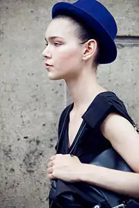 Kolfinna Kristófersdóttir is originally from Vestmannaeyjar, Iceland.[1] She was working in a clothing shop when she was scouted by the local modeling agency Eskimo. In 2011 she won second place at the Ford Models contest for Iceland.[2] Internationally she is represented by Next.