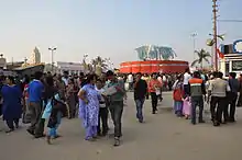 The International Kolkata Book Fair (Old name: Calcutta Book Fair in English), and officially Antarjatik Kolkata Boimela or Antarjatik Kolkata Pustakmela in romanized Bengali, Bengali: (আন্তর্জাতিক কলকাতা বইমেলা বা আন্তর্জাতিক কলকাতা পুস্তকমেলা) is a winter fair in Kolkata. It is a unique book fair in the sense of not being a trade fair—the book fair is primarily for the general public rather than whole-sale distributors. It is the world's largest non-trade book fair, Asia's largest book fair and the most attended book fair.[1] It is the world's third largest annual conglomeration of books after the Frankfurt Book Fair and the London Book Fair. Many Kolkatans consider the book fair an inherent part of Kolkata, and instances of people visiting the fair every day during its duration are not uncommon. The fair offers a typical fairground experience with a book flavour—with picnickers, singer-songwriters, and candy floss vendors. With a total footfall of over 2 million people, it is world's largest book fair by attendance.[2]