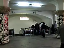 Komsomolskaya (Russian: Комсомо́льская) is a Moscow Metro station in the Krasnoselsky District, Central Administrative Okrug, Moscow. It is on the Sokolnicheskaya line, between Krasnye Vorota and Krasnoselskaya stations. It is located under Komsomolskaya Square, between the Leningradsky, Yaroslavsky, and Kazansky railway terminals. The station was named for the workers of the Komsomol youth league who helped to construct the first Metro line. It has a transfer at the-same-called-station on the Koltsevaya line.