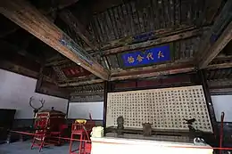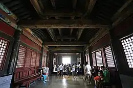 The Second Hall (Chinese: 二堂; pinyin: èr Táng) was used for receiving high-ranking officials as well as for examinations in music and rites by the duke. It contains seven tablets inscribed by emperors, including one with the character "shou" (longevity) written by the Empress Dowager Cixi.[11]