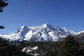 Kongde Ri (sometimes Kwangde Ri) is a mountain in the Himalaya of eastern Nepal. The mountain is located four km west of Namche Bazaar.