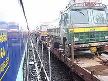 RORO means Roll-on/roll-off, where loaded trucks are directly carried by railway wagons to their destination. The first ever RO-RO service in India was run by Konkan Railway. Konkan Railway passes through tough terrains of India. There is NH-66 passing through same route. Truck drivers find it extremely difficult to drive loaded trucks through ghats, undulating surfaces, narrow roads and poor road and weather conditions. The KRC came with concept of RORO, where loaded trucks are moved on wagons and are travelled by train. This has helped in saving of fuels, decrease in wear and tear of lorries (trucks), relief to drivers of driving in extreme conditions, can reach faster to destination. This also helps decrease road congestion and reduces pollution. This concept has been beneficial for both truck operators and KRCL.