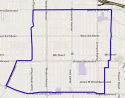 Beverly Boulevard on the north, Virgil Avenue, Wilshire Place and Westmoreland Avenue on the east, Olympic Boulevard on the south and Crenshaw Boulevard and Wilton Place on the west. The neighborhood is flanked by East Hollywood to the north, Westlake to the east, Pico-Union, Harvard Heights and Arlington Heights to the south, Mid-Wilshire and Windsor Square to the west and Larchmont to the northwest.[41]