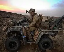 | Suzuki King Quad 750 AXI | All-terrain vehicle | 60 | ![]() | Used for increased mobility, approachability for local populations and challenging terrain. Quads first saw action with the KCT during the Task Force 55 deployment. Consequently, they were widely used during long-range reconnaissance patrols in Mali as part of the MINUSMA deployment. They are often used by snipers and forward air controllers as their limited size and relatively quiet engines are well suited for clandestine operations. If needed, a FN MAG general-purpose machine gun can be fitted to the rear of the vehicle as well. [46] |