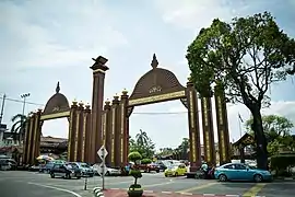 Kota Bharu was founded during the late 19th century. Before the establishment, Kota Bharu was home to Kelantan's Royal Palace, then established by Sultan Muhammad II of Kelantan in 1844 as Kelantan's state capital who wanted the new state capital built in his honour.[3] Prior to this, Kota Bharu was known as Kuala Kelantan. Before Kota Bharu assumed the role, the Kelantanese capital was divided into two which were Kota Kubang Labu and Kota Pengkalan Datu.[4] During the 19th century, Kelantan was a prosperous and populous state with a population of around 30,000 to 50,000 people including a thousand Chinese. Production from within the state include gold, tin ore, black pepper, areca nut, rice, rattan, bamboo, agarwood and songket. Kota Bharu acts as entrepot for goods due to its strategic location beside the Kelantan River.[5]