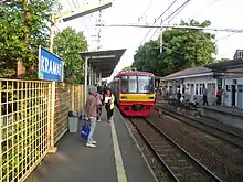 Kramat Station (KMT) is a railway station located in Jalan Percetakan Negara III, Paseban, Senen, Central Jakarta, Indonesia. The station is located in the altitude of 5 meters above sea level.[1] This station is located between Gang Sentiong railway station in the north and Pondok Jati railway station in the south. This station serves Commuterline Yellow Line connecting Jatinegara to Bogor.