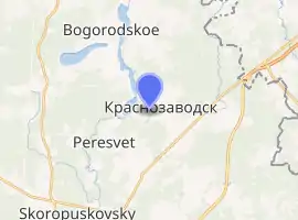 Within the framework of administrative divisions, it is, together with two rural localities, incorporated within Sergiyevo-Posadsky District as the Town of Krasnozavodsk.[1] As a municipal division, the Town of Krasnozavodsk is incorporated within Sergiyevo-Posadsky Municipal District as Krasnozavodsk Urban Settlement.[4]