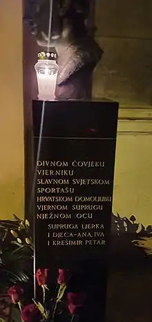 In the years following his career in basketball, Ćosić worked in the United States, as a Croatian diplomat, at the embassy in Washington, D.C., having helped secure the land where the embassy now stands. Ćosić died in Baltimore, Maryland, in 1995, of non-Hodgkin's lymphoma.[11] He was buried in the Mirogoj Cemetery, under the Arcades, in Zagreb, Croatia. People came from all over former Yugoslavia to his funeral, even though there was a war at the time. He was survived by his wife, Ljerka, his two daughters, and his son, Krešimir.[15]