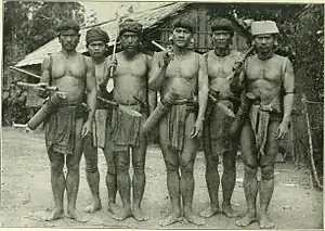 ![]() A group of Penyahbong rhino hunters, 1920. | |