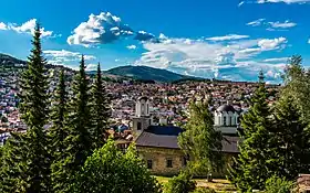 listen); Aromanian: Crushuva[1]) is a town in North Macedonia. In Macedonian language the name means the 'place of pear trees'. It is the highest town in North Macedonia and one of the highest in the Balkans, situated at an altitude of over 1350 m (4429 feet) above sea level.[2] The town of Kruševo is the seat of Kruševo Municipality. The town is officially bilingual, Macedonian and Aromanian, hence both town names are official. It is located in the western part of the country, overlooking the region of Pelagonia, 33 and 53 km from the nearby cities of Prilep and Bitola, respectively.