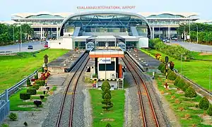 Kualanamu International Airport Station (KNM) is a airport railway station located in Kualanamu International Airport complex, in Beringin, Beringin, Deli Serdang Regency, North Sumatra, Indonesia. The station is only about 50 meters from the airport building. This station is currently serving Kualanamu Airport Rail Link trips to Medan Station.