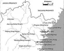 The Kucheng massacre (Chinese: 古田敎案; Pinyin: Gǔtián Jiào'àn; Foochow Romanized: Kŭ-chèng Gáu-áng) was a massacre of Western Christians that took place at Gutian (at that time known in the west as Kucheng) Fujian, China on August 1, 1895. At dawn of that day, a fasting folk religious group attacked British missionaries who were then taking summer holidays at Gutian Huashan, killing eleven people and destroying two houses. The Kucheng Massacre is considered one of the worst attacks against foreigners in China prior to the Boxer Movement in 1899–1901, the only comparable event in China's missionary history being the Tianjin Massacre in 1870.[1]