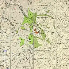 An Ottoman village list of about 1870 indicated 12 houses and a population of 40, though the population count included men only.[13][14] In 1883, the PEF's Survey of Western Palestine described Kudna as a small village situated on a low hill and surrounded by olive trees. The walls of a Crusader Castle rose from the middle of the village.[15]