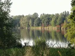 Kuhgrabensee is a lake entirely in the southeast of the Bremen district of Blockland . The lake has a surface area of approximately 17.8 hectares and a maximum depth of 16 meters with an average depth of 13 meters.