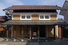 The kura storehouse was specifically used to store precious items. Other sorts of storehouses such as outbuildings (naya) and sheds (koya) were used to store more mundane items. The first kura appear during the Yayoi period (300 BC – 300 AD) and they evolved into takakura (literally tall storehouse) that were built on columns raised from the ground and reached via a ladder from underneath. They were especially prevalent on the Ryukyu Islands and Amami Ōshima.[2] During the Nara period (710–794), the government taxed the country in rice, and kura were frequently used to store it. After the introduction of Buddhism to Japan, kura were often used to religious items, such as sutra.[3][4]