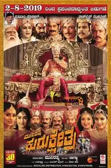 Kurukshetra is an Indian Kannada-language epic historical war film, written by J. K. Bharavi and directed by Naganna. The story is based on the epic poem Gadhayuddha by Ranna,[2][3][4] which itself is based on the Indian epic Mahabharata.[5][6] The story is centred on Duryodhana, the Kaurava king.[7] The film was produced by Munirathna.[8]