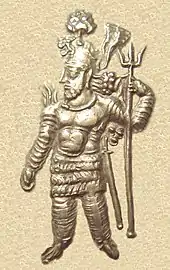 Possible Kushano-Sasanian plate, excavated in Rawalpindi, Pakistan, 350-400 CE.[16] British Museum 124093.[17][18]
