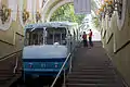 ![]() Looking from the top station, two Kyiv funicular wagons approach each other, where they will finally pass each other on the system's two track sidings | |