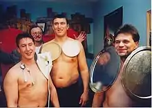 László Harasztosi, also known as Lazlo Hypnotist, is a psychic, bioenergeticist, and alternative medicine practitioner. His speciality is attaching metal objects on human bodies. When breaking the Guinness record in 1998, he placed two disks weighing altogether 57,64 kg (127 lbs) on László Fekete’s chest (the strongest man of Hungary[1]).
