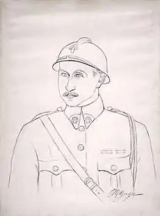Rosenberg volunteered for military service in 1915. He moved into a house at rue Marthe Édouard in Meudon near the military base, but also retained his Paris apartment at 22 rue Lavoisier and his Hôtel particulier 19 Rue de la Baume in the 8th arrondissement of Paris. During his periods of leave he continued to purchase Cubist works. From May, 1916, Rosenberg worked outside his unit as an English interpreter at the field headquarters of the Allied forces on the Somme front. During leave at the end of 1916 Rosenberg, through the intermediary of Juan Gris, went to Gino Severini's studio and bought a large painting of Woman Reading; possibly Severini's 1916 Femme lisant (Jeanne dans l’atelier; La lecture n. 1). The death of Umberto Boccioni during the month of August 1916 marked Severini's rupture from Futurism and his move closer to the Cubists.[4]