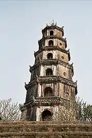 Lê Tương Dực (黎襄翼), posthumous name Tương Dực Hoàng đế (襄翼皇帝), proved to be just as bad a ruler as Lê Uy Mục. He reigned from 1510 to 1516, all the while spending down the royal treasury, and doing nothing to improve the country. He was heedless to the reaction that his taxes caused throughout the country. Later in his reign, he spent extravagantly in building many colossal palaces in the imperial capital, Thăng Long. The most notable of those places was one known to the Vietnamese as Cửu Trùng Đài, designed by the emperor's favoured architect Vũ Như Tô. He also spent much time enjoying sexual activities with his concubines, many of whom were former concubines of Lê Hiến Tông and Lê Uy Mục. According to court chroniclers, he ordered the build of special boats for his nude concubines to row on large artificial lakes.[53] As the result of the emperor's luxurious lifestyle and ignorance of state affairs, the people suffered considerable hardships. Many soldiers committed to build imperial palaces died due to diseases.[53] As the government became increasingly unpopular, many rebellions broke out. The largest of them was that of Trần Cảo, a northerner who claimed to be an heir of the House of Trần.[54] His rule ended in 1516 when a group officials and generals led by Trịnh Duy Sản stormed the palace and killed him.[55][56]