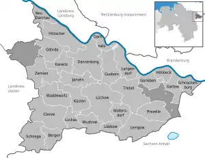 Lüchow-Dannenberg is a district in Lower Saxony, Germany, which is usually referred to as Hanoverian Wendland (Hannoversches Wendland) or Wendland. It is bounded by (from the west and clockwise) the districts of Uelzen and Lüneburg and the states of Mecklenburg-Western Pomerania (district of Ludwigslust-Parchim), Brandenburg (district of Prignitz) and Saxony-Anhalt (districts of Stendal and Altmarkkreis Salzwedel).