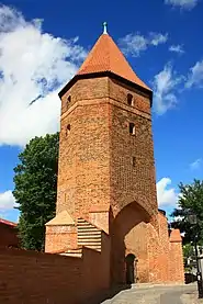 After the outbreak of World War II, the persecution of indigenous Poles, including Kashubians, intensified, and the patients of the local psychiatric hospital were murdered in Piaśnica, however, the Polish resistance movement remained present in the district.[17] Lauenburg was also the location of the Nazi concentration camp Lauenburg, a subcamp of Stutthof. The city was occupied without resistance by the Soviet Red Army on 10 March 1945. Most of the Old Town burned in the subsequent Soviet rampage, although the Gothic Church of St. James and the Teutonic castle survived.[13] During this time about 600 people committed suicide.[18]