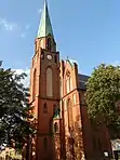 When the district was divided in 1846, Lauenburg became the capital of a new district (Landkreis Lauenburg i. Pom.). Lauenburg began to develop as an industrial center after its 1852 connection to the Prussian Eastern Railway to Danzig and Stettin (Szczecin).[4] In 1866, the Masonic Lodge was formed, whose membership was in the main made up of the elite entrepreneurial class. The building survives to this day. The town became part of the German Empire in 1871 during the unification of Germany. Chancellor Otto Fürst von Bismarck (1815–1898) was made an honorary citizen in 1874. New German settlers came to the town, but Poles also still settled there.[9] Despite Germanisation policies, the Polish-Kashubian movement developed.[10] Helpful in preserving Polish culture and identity was the local Catholic church, in which Polish language lessons were still organized.[11]
